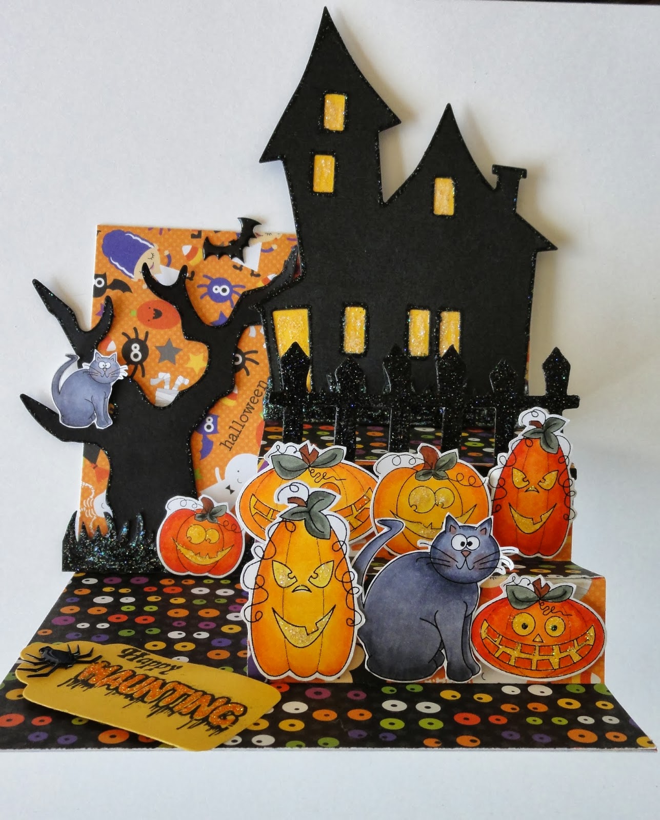 This is a fantastic Halloween creation, Gail! I love the dramatic look of the black house and tree and the colorful details of the pumpkins and papers. This must have taken you quite some time to put together, but the result is fabuloous!!!